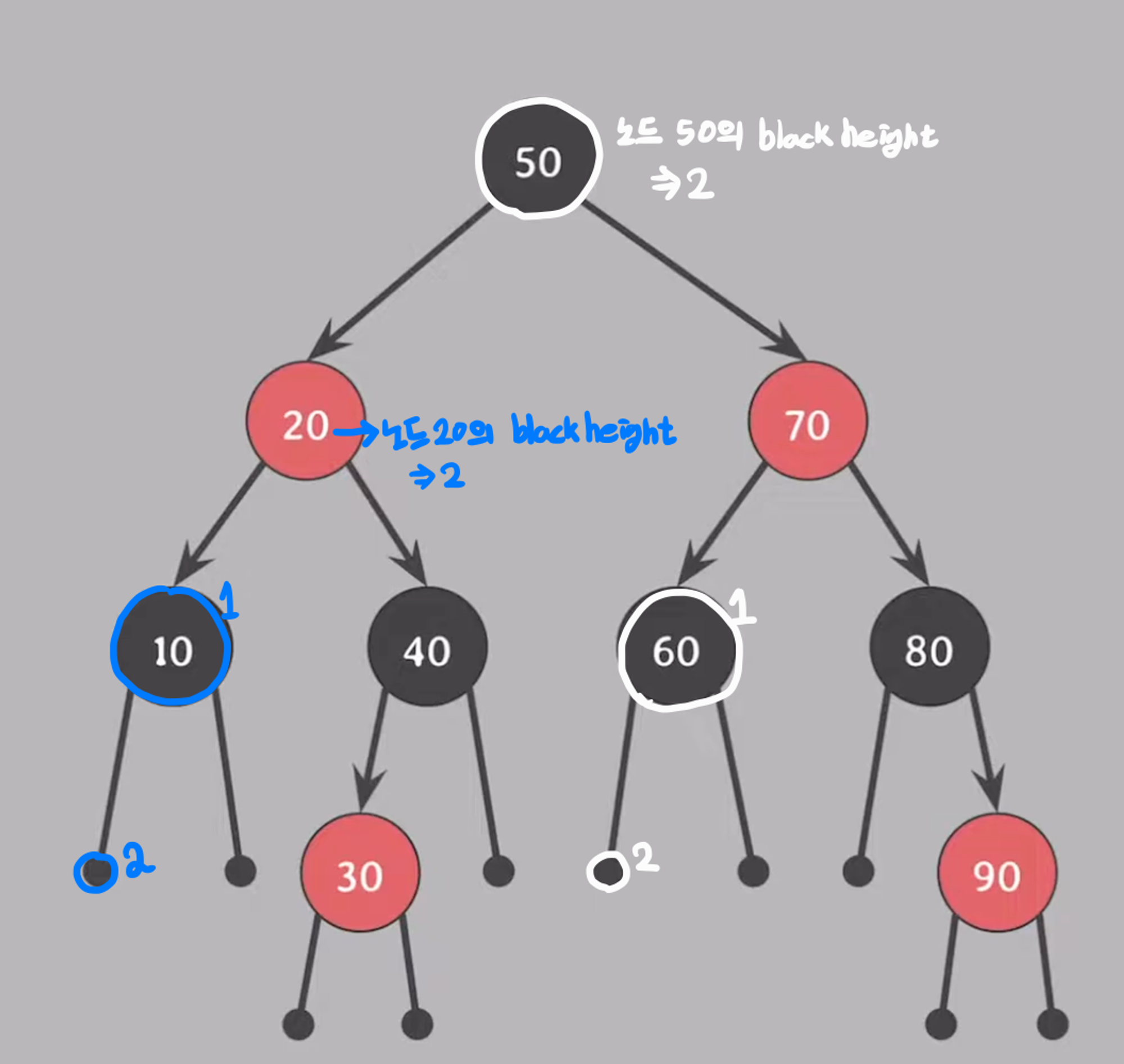 - 노드 x에서 임의의 자손 nil 노드까지 내려가는 경로에서의 black 수
