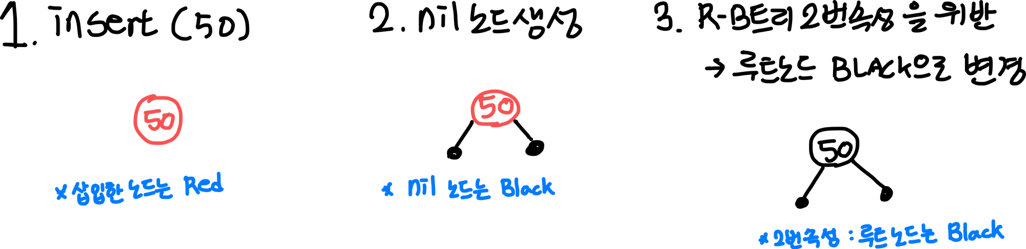 - 노드를 삽입할때 nil노드의 색은 black으로 고정한다.